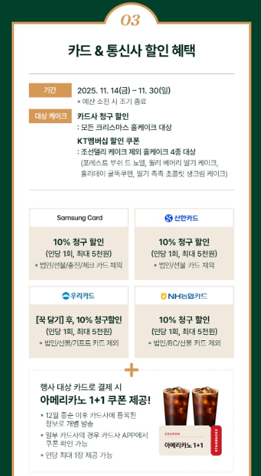 또한, 해당 카드로 결제하면 아메리카노 1+1 쿠폰까지 제공되니 혜택이 겹겹이 쌓입니다.